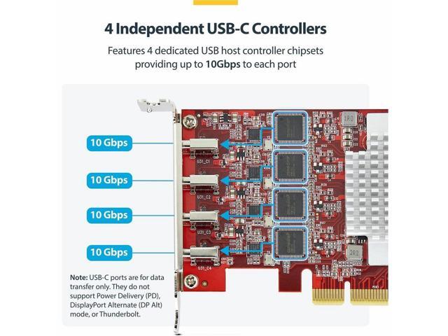 - Traditional single-controller USB cards share bandwidth across all ports. With its four independent USB controllers, this USB-C expansion card enables each port to achieve up to 10Gbps, reducing bottlenecks and increasing data throughput.