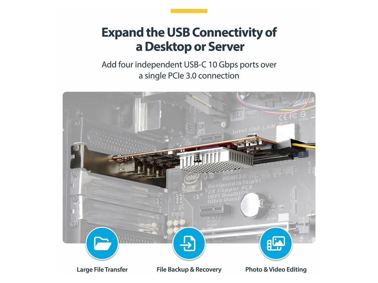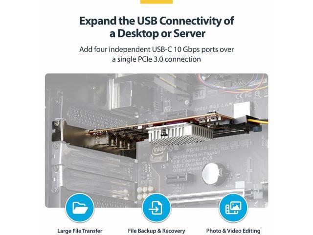 - Expand the USB connectivity of a desktop computer or server by adding four external USB Type-C 10Gbps ports with this internal PCI Express 3.0 expansion card.