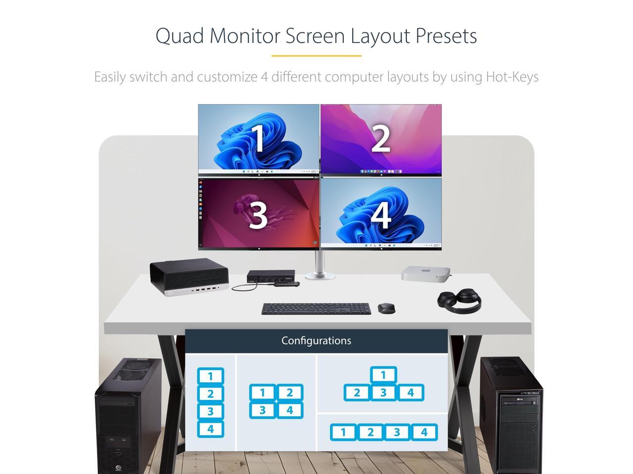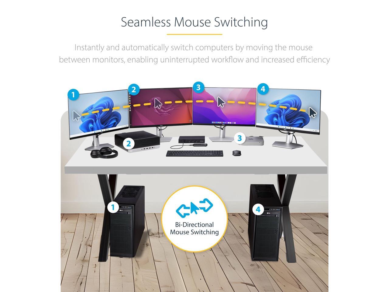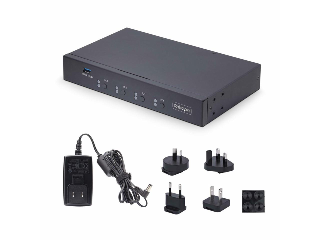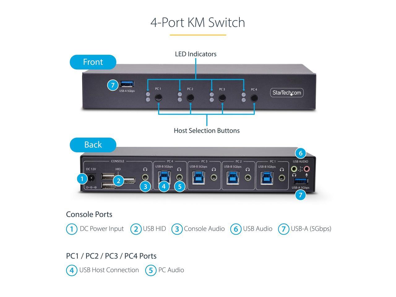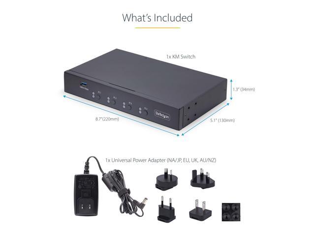 StarTech 4-Port KM Switch w/ Mouse Switching - USB 3.0 Keyboard/Mouse Switcher for 4 Computers - 3.5mm and USB Audio - TAA Compliant P4A20132-KM-SWITCH