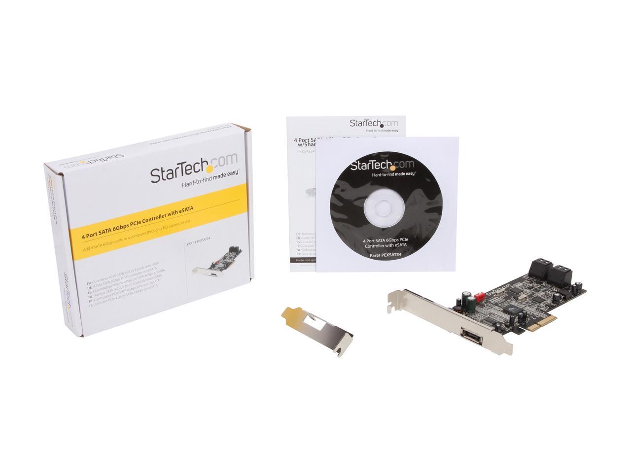 StarTech.com PEXSAT34 PCI-Express 2.0 x4 Low Profile Ready SATA III (6.0Gb/s) 4-Port SATA and 1-Port eSATA Controller Card