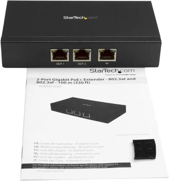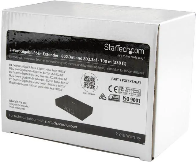 StarTech POEEXT2GAT 2 Port Gigabit PoE+ Extender 802.3at & 802.3af - 100m (330 ft.) - Power over Ethernet Extender - PoE Repeater Network Extender