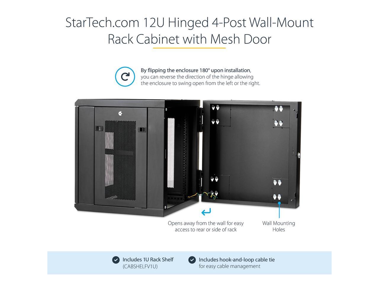 StarTech.com 4-Post 12U Wall Mount Network Cabinet with 1U Shelf, 19" Hinged Wall-Mounted Server Rack for Data / AV / Electronics / Computer Equipment, Flexible Vented Rack Enclosure