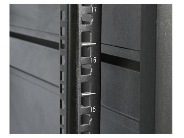 - Network and telecommunications equipment securely in this 22U solid steel rack