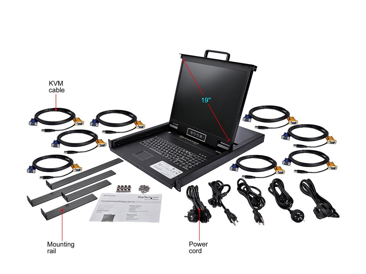 StarTech.com RKCONS1908K Rackmount KVM Console - 1U - 19in - 8 Port KVM - VGA KVM - Rack Mount Monitor - Rackmount LCD Monitor - Rackmount Console