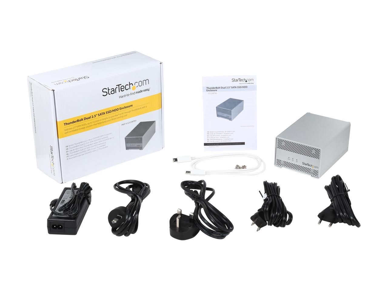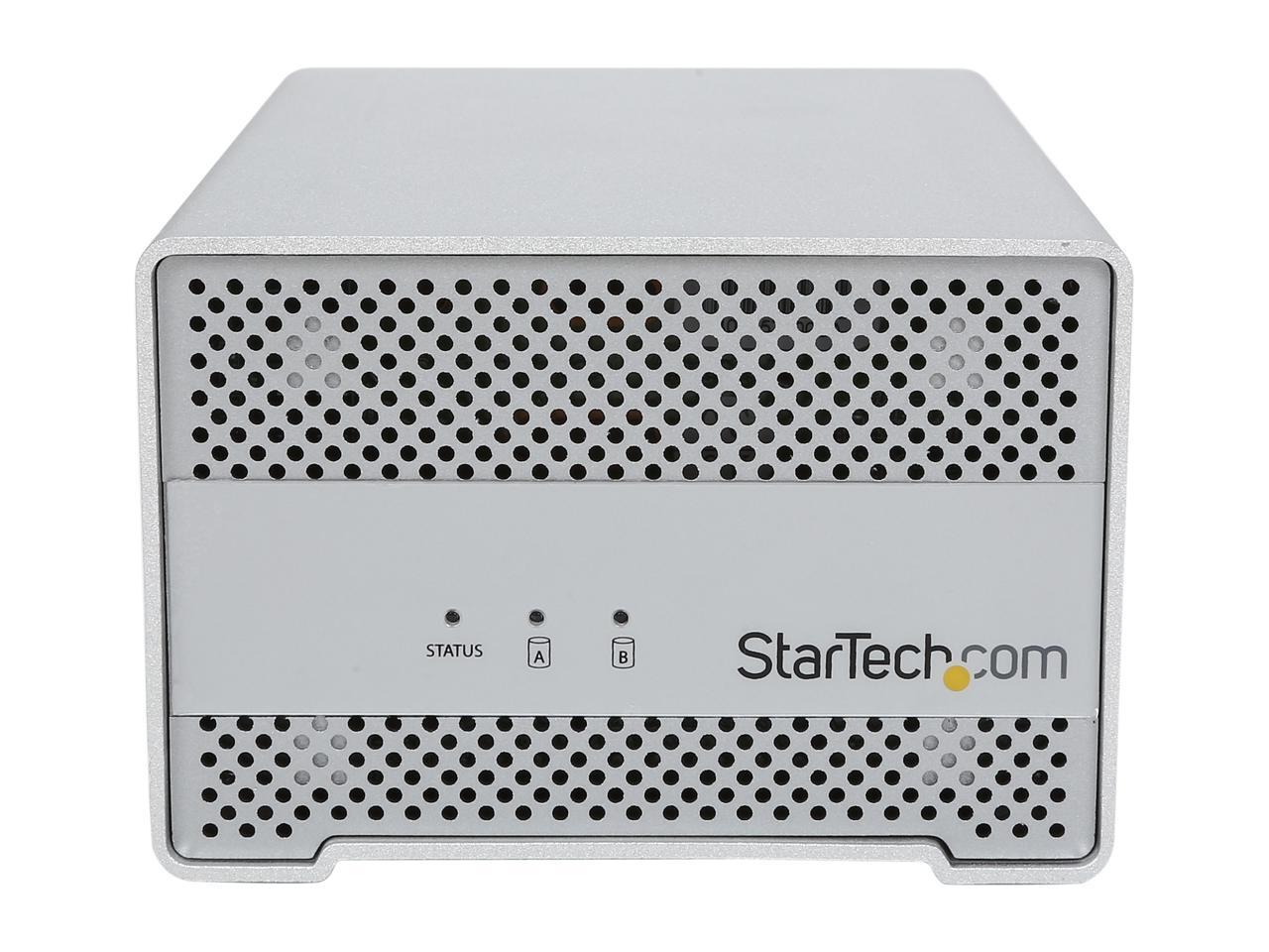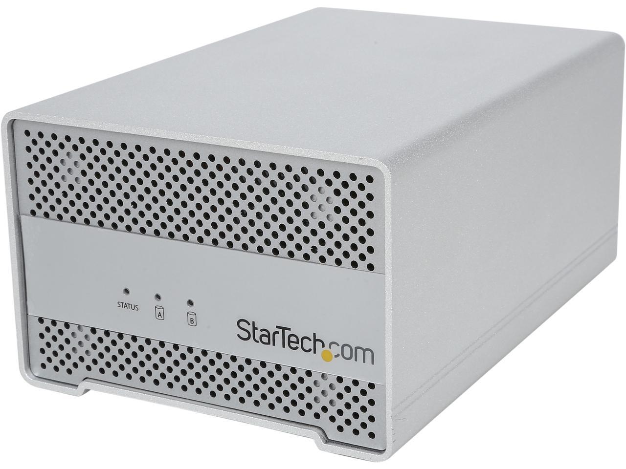 StarTech.com Dual Bay External 2.5-Inch HDD/SSD Aluminum Thunderbolt Hard Drive Enclosure with Thunderbolt Cable and Built-In Fan (S252SMTB3)