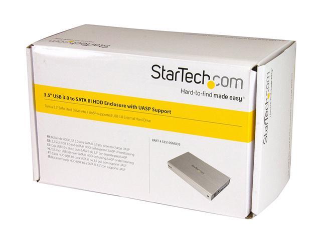 StarTech S3510SMU33 3.5in Silver Aluminum USB 3.0 External SATA III SSD / HDD Enclosure with UASP - Portable USB 3 3.5" SATA Hard Drive Enclosure