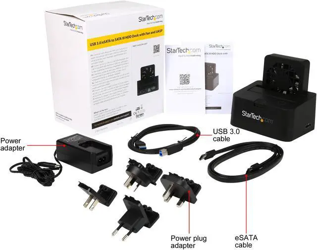 Easily connect and swap hard drives and solid-state drives to and from your computer system, with the added benefit of a built-in 80mm fan - Works with eSATA or USB 3.0 computer systems such as MacBook Pro and 2.5" & 3.5" SATA hard drives & solid-state drives - eSATA SSD Dock / SATA 6Gbps transfer speeds / USB 3.0 HDD dock with UASP - Connect drives to this dock for data recovery applications in a data recovery center or computer repair shop - Backup data to an external data archiving drive
