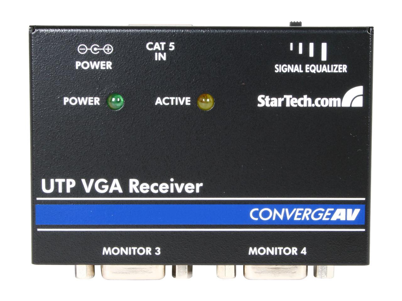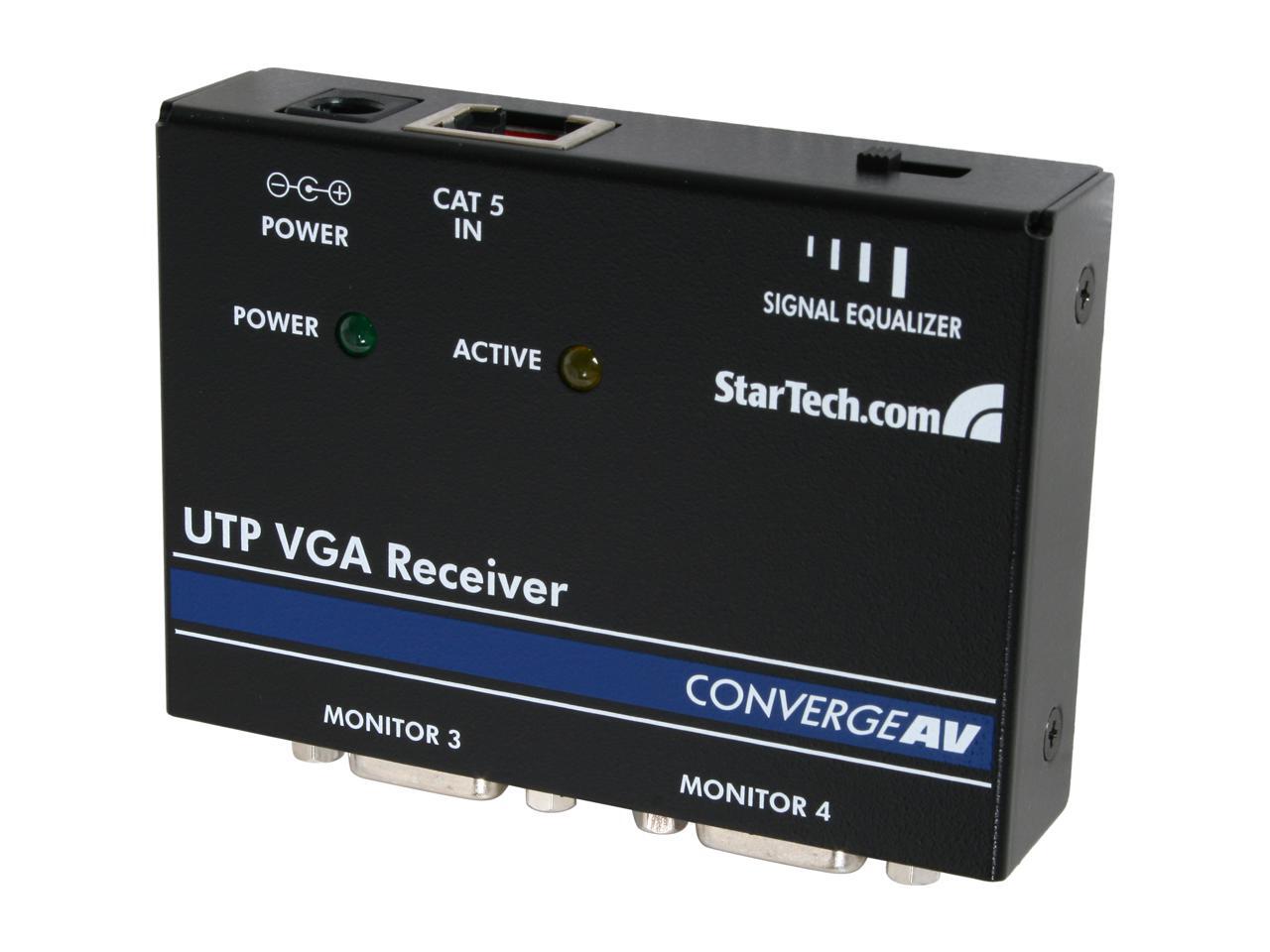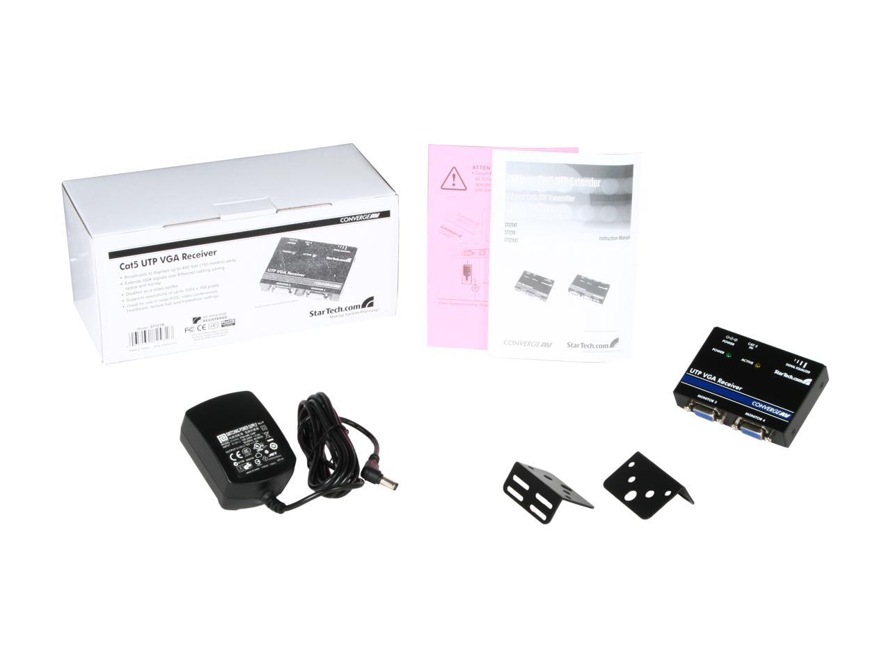 - Works with the ST1212T, ST1214T & ST1218T CAT5 extenders to receive a VGA video signal and distribute to the monitor