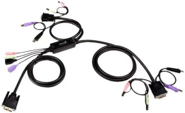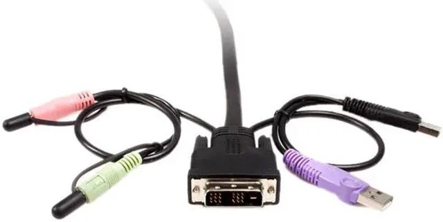 As a complete KVM solution, this cable-style KVM switch includes all of the cables and connections required to share one DVI monitor, keyboard and mouse, as well as speakers, across two computers. Plus, the switch features independent audio/microphone switching to ensure an uninterrupted audio experience, even when switching between computers.