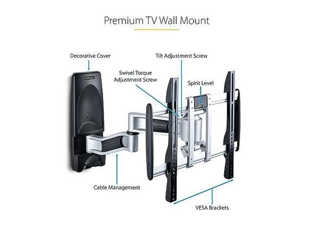 VERSATILE: Adjustable corner TV wall mount features tilt & swivel torque adjustment for smooth positioning; VESA wall mount features +/-90° swivel, +/-15° tilt, and double swivel arms; Low-profile TV mount allows for 4.13in from the wall and up to 22.1in