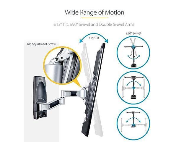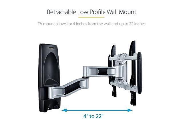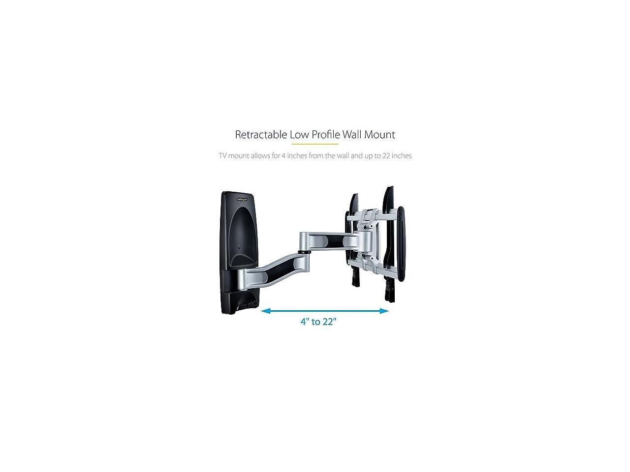 StarTech Articulating TV Wall Mount, VESA Wall Mount, Supports 26 to 65 inch/99lb/Flat/Curved TVs, Retractable Low Profile Wall Mount TV Bracket, Adjustable Corner TV Wall Mount - TAA