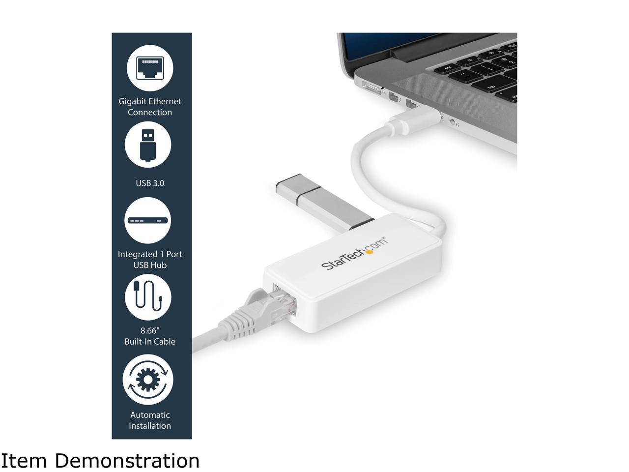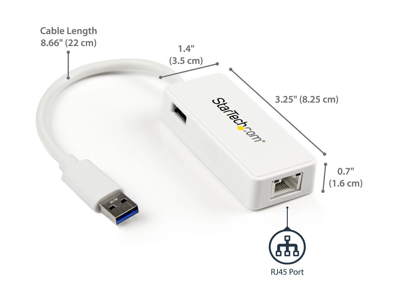 StarTech USB31000SPTW USB 3.0 Gigabit Ethernet Adapter NIC w/ USB Port - White