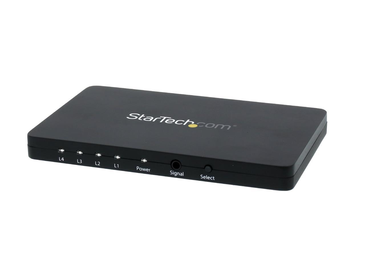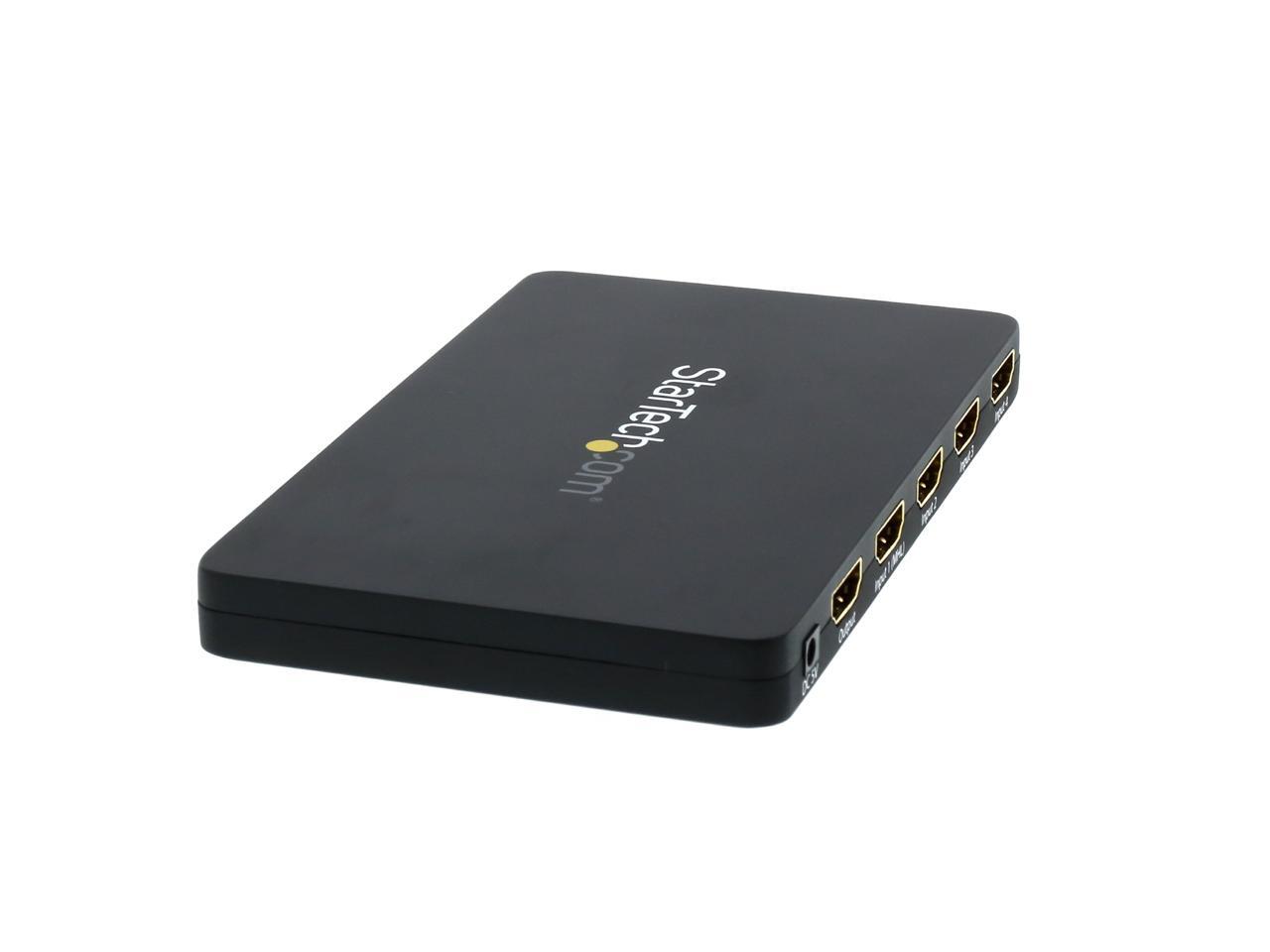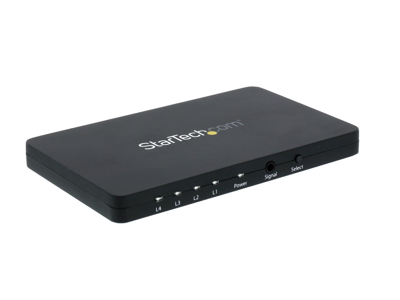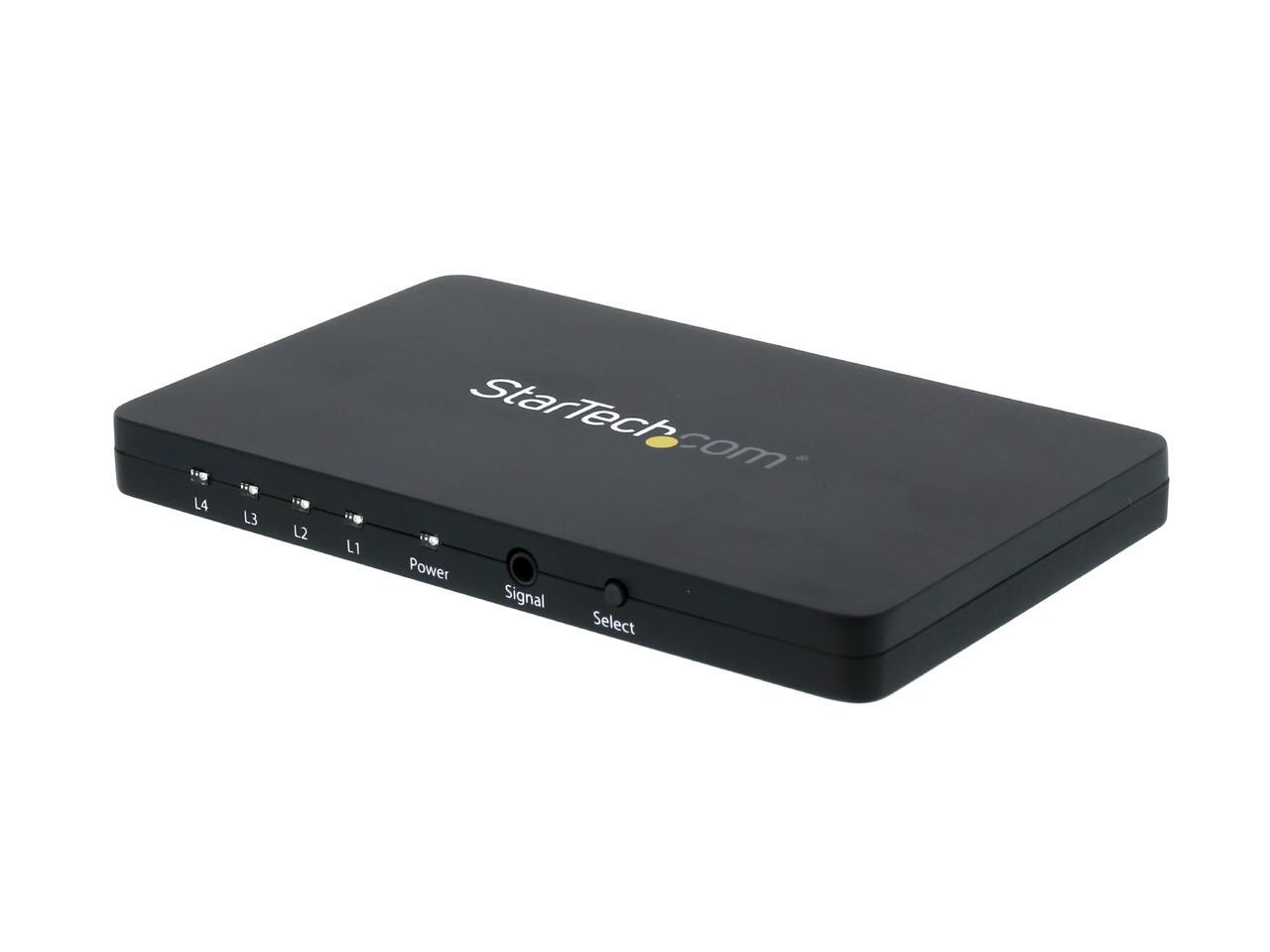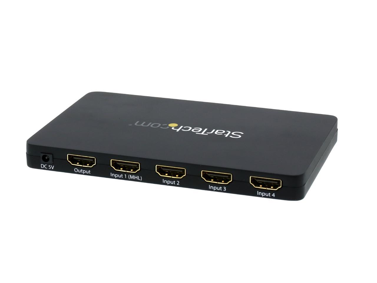 The VS421HD4K 4-port HDMI 4K switch lets you share a display or projector with four HDMI-enabled audio / video source devices. The switch features four independent inputs that each support 4K resolution and 7.1 surround sound audio. The 4-port switch also features MHL support on HDMI input port 1, enabling video output video from MHL-enabled mobile devices such as Samsung Galaxy tablets and smartphones.