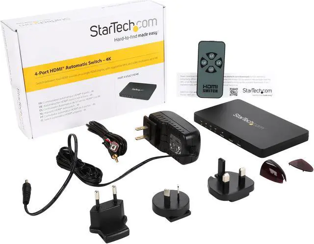 1 - 4-Port 4K HDMI Switch 1 - IR cable 1 - Remote Control 1 - Universal Power Adapter (NA / UK / EU)