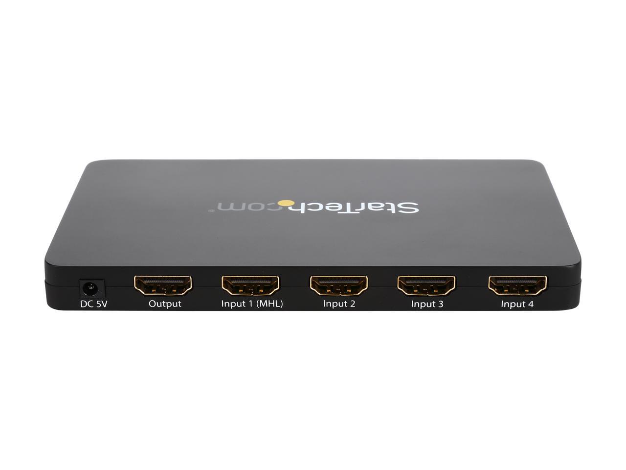 StarTech.com VS421HD4K 4-Port HDMI automatic video switch w/ aluminum housing and MHL support - 4K 30Hz