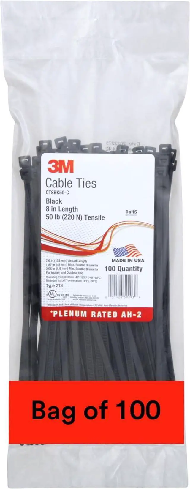 Thread and install faster with curved tipsConfidently install in any position with the self-locking headConfidently install in any position with the self-locking headHolds out moisture with the help of its heavy-wall tubingCable ties come in black and measure 0.18 -in x 7.6 -in longFor industrial/occupational use only. Not for consumer sale or use
