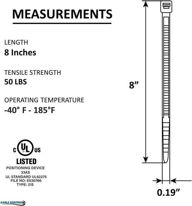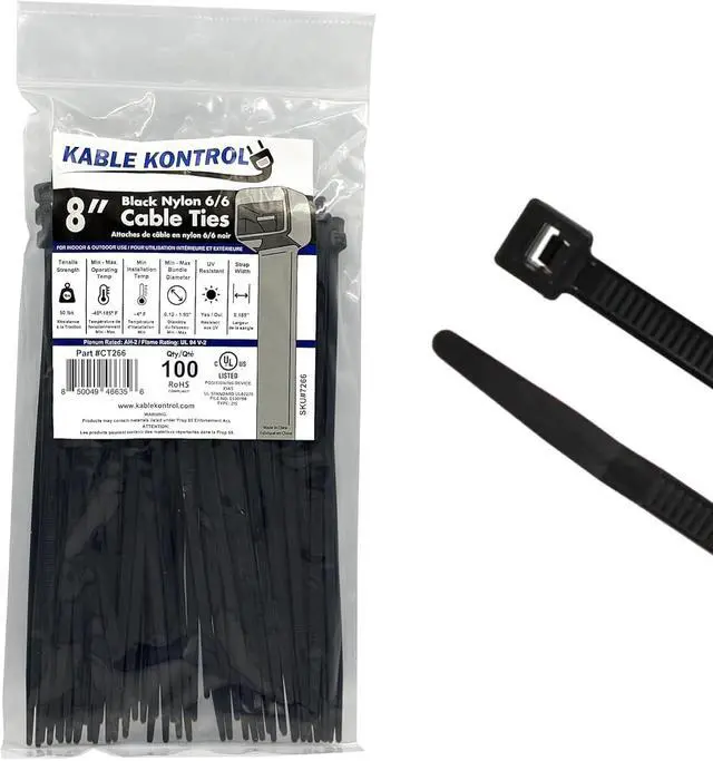 Dimensions: 8 Inch Long | 100 Pcs / Pack | Black | 50 Lbs. Tensile Strength | UV Resistant Nylon 6-6Indoor &