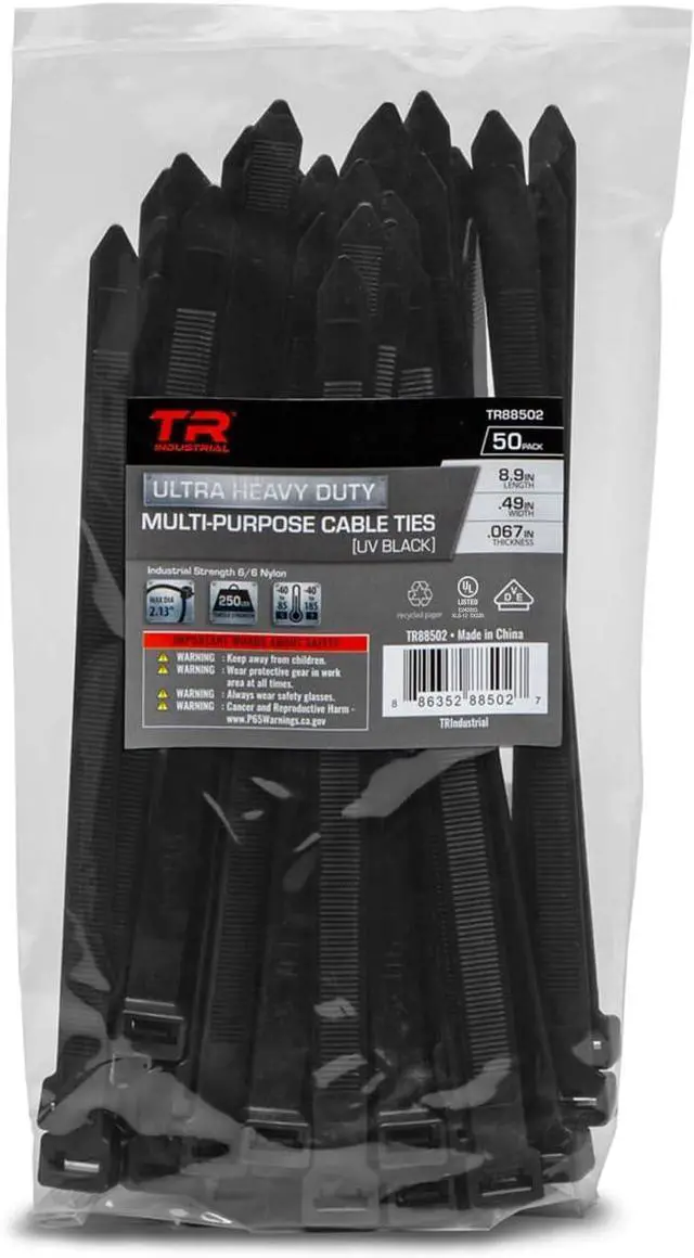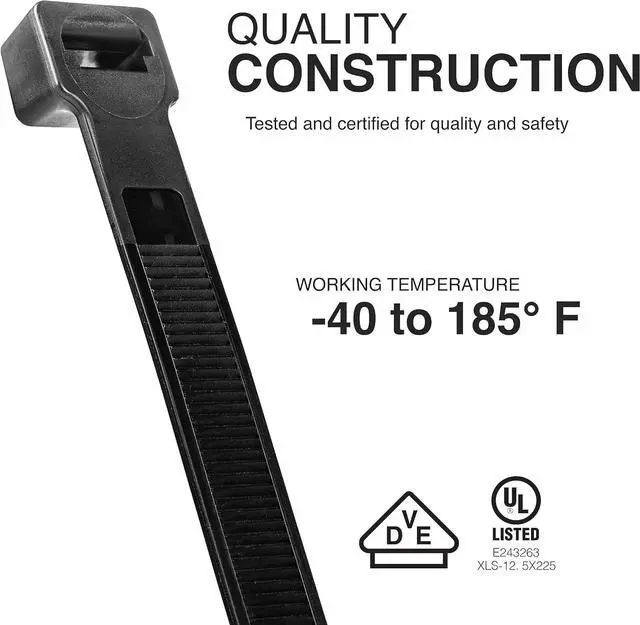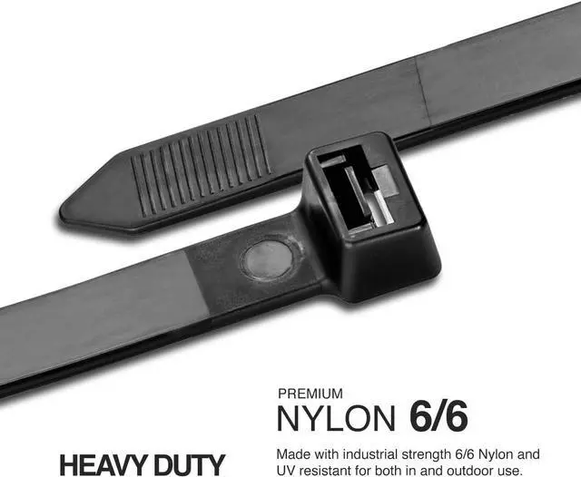 Ultra heavy duty cable tie with 250 lbs. tensile strength handles your toughest jobsMade with industrial strength 6/6 Nylon and UV resistant for both in and outdoor useUL and VDE tested and certified for quality and safetyBundle