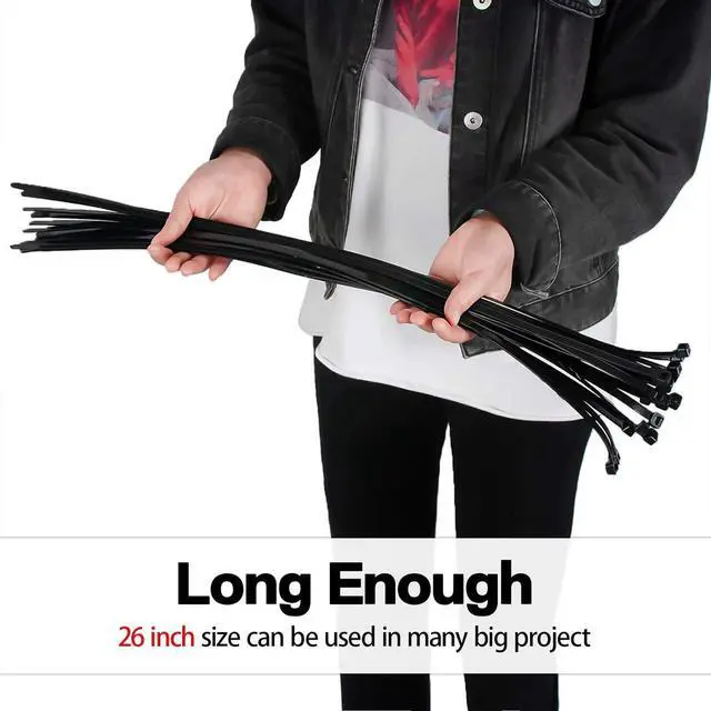 Only Long Enough: we give wider and thicker 26 inch zip ties to support its length because we know customers would use this long zip ties to many heavy and big projects(W: 0.314 in