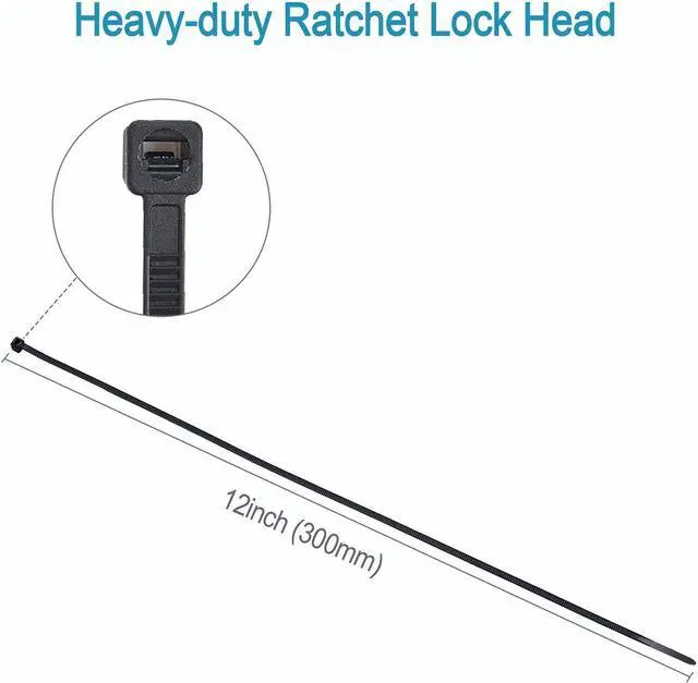 Self-Locking: Zip ties 12 inch with self-locking Fastener Design strong resilient powerful lock easy handling and prevent snagging in tight.