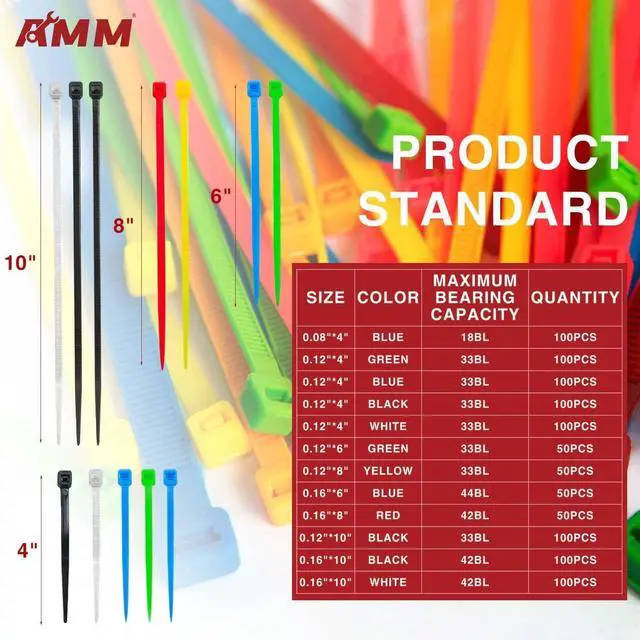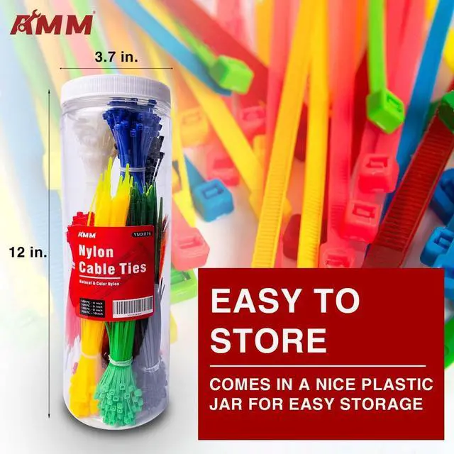 Beautiful and practicalThis zip ties is colorful not only beautiful but also practical different colors for you to match different colors of wire help you distinguish more conducive to your workBenefits of the productInjection molding by a fully intelligent large injection molding machine the serrated depth of the binding belt is consistent more powerful grasp after fastening not easy to slideWide application This nylon tie with 1000 to meet your home decoration work outdoor work needs let you do not have to worry about the clutter of wires at homeDifferent sizesOur nylon ties come in four sizes: 5004-inch 1006-inch 1008-inch and30010-inchExquisite packagingWrapped in a nice gift box you can buy it for your friends or familyBRAND
