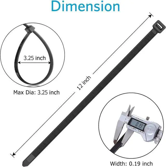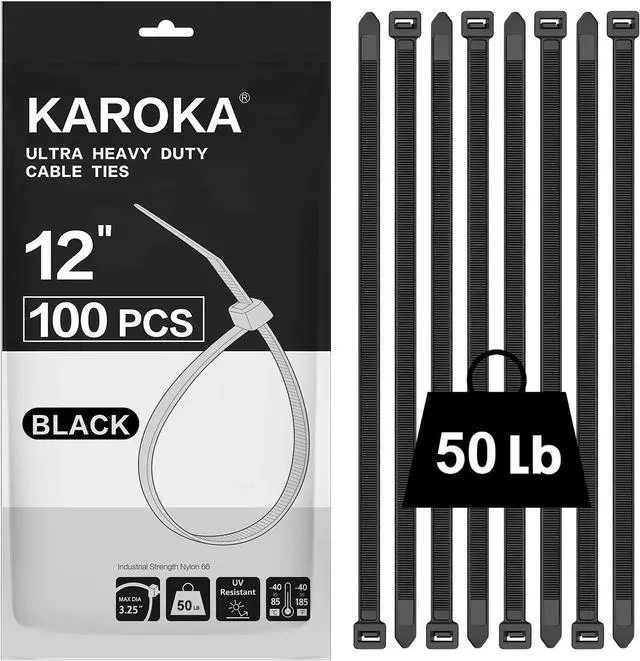 Heavy Duty: Karoka black zip tie 12 inch is 0.19 inch( 4.8 mm) while industry standard is 0.14 inch( 3.6 mm) Stronger than other wire ties.
