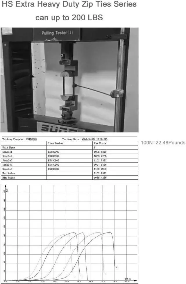 Nylon[230 Pounds Tensile Strength] HS extra heavy-duty zip tie series features a tensile strength of 200 pounds with the capability to reach up to 230 pounds this exceeds the industry standard of 175 pounds for zip ties of the same specifications on the marketPackage: extra big heavy duty plastic zipties wrap 16 inch 20 pieces in poly bagLength: 430mm(