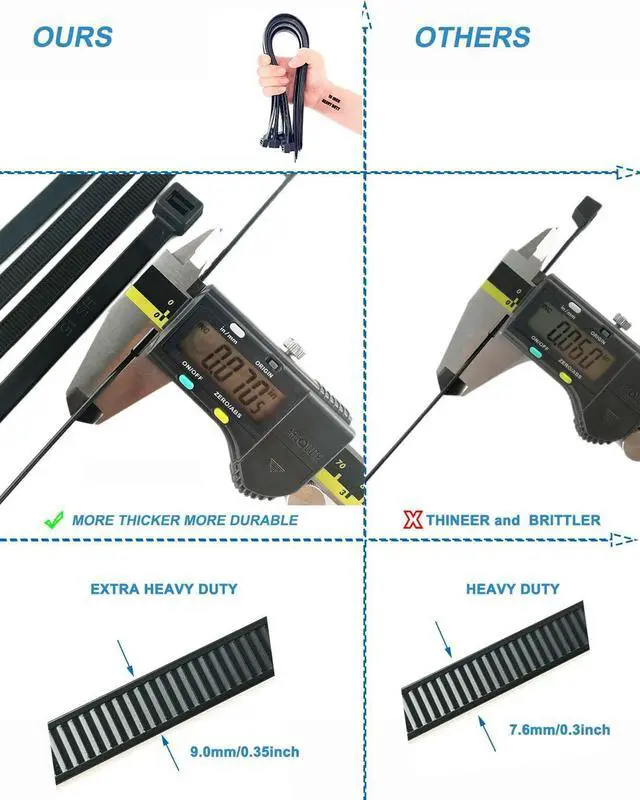 eatures: Industrial and durable construction grade extra thick and weatherproof the teeth engage as they should self-locking design ensure bundle cables more tightly and secure perfect stuff of cable management it is popular with vintner decorator designer engineerRISK FREE GUARANTEED - Quality guarantee and 5-star customer service. If you are not 100% completely satisfied with your self locking extra heavy duty cable ties simply let us know and you will be offered a refund or replacement.