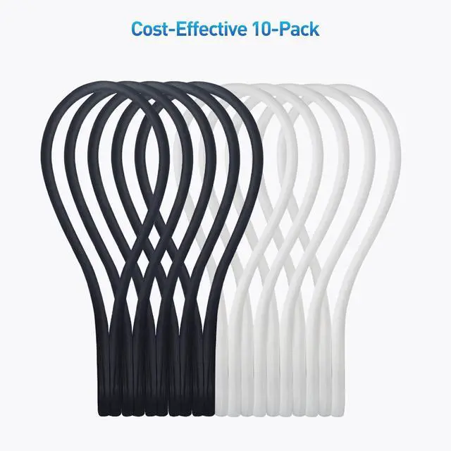 Tool: The silicone cord ties come in 5x black and 5x white cords; Create a matching color scheme or identify different cord runs with different colorsCost-Effective 10-Pack: Enjoy 10 silicone cord ties enough to tame several unsightly cable runs or save extras for a future use