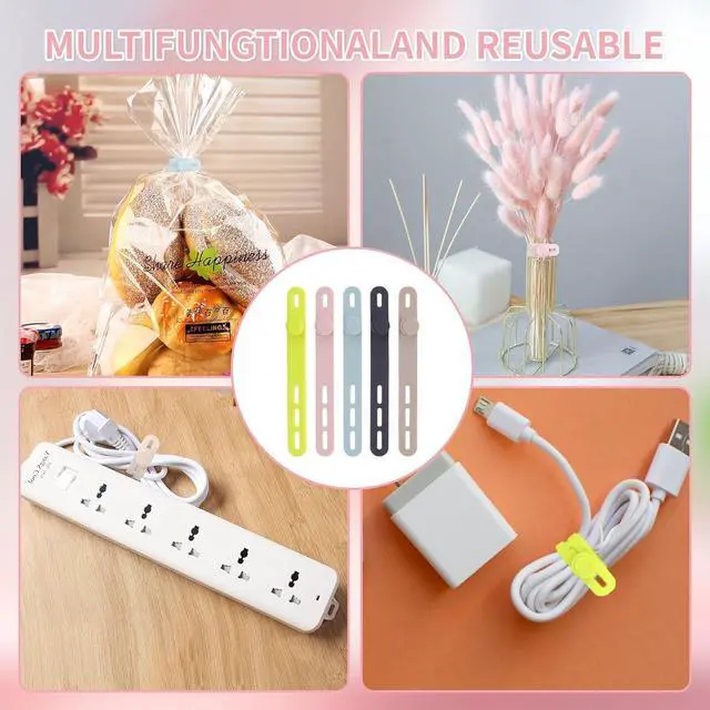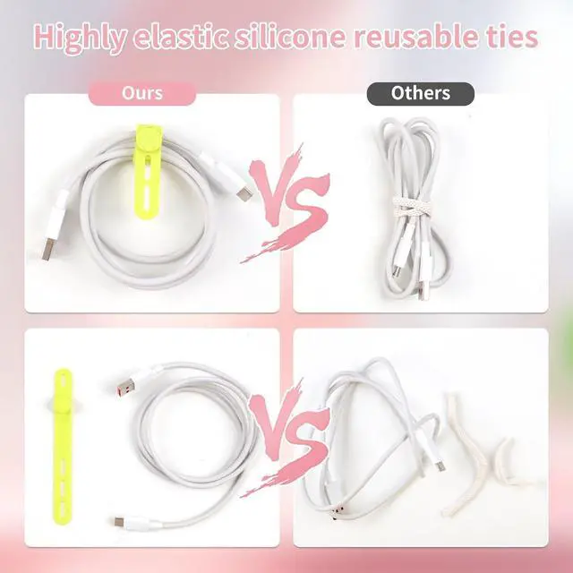 HIGH ELASTIC SILICONE: Our silicone cable ties are made of high-quality silicone material with high elasticity abrasion resistance and reusable properties. High elasticity can be stretched up to 36cm. no sharp edges not afraid of damaging your items. No odor so you can use it with more peace of mind.