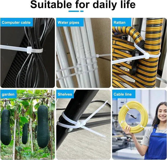 Wide Application: Our cable zip ties are perfect for indoor and outdoor like home garden office workshop and garage. Not only perfect for cable or wire organized and tying use but also suitable for DIY ideas gardening fixing hanging heavy stuff and more.