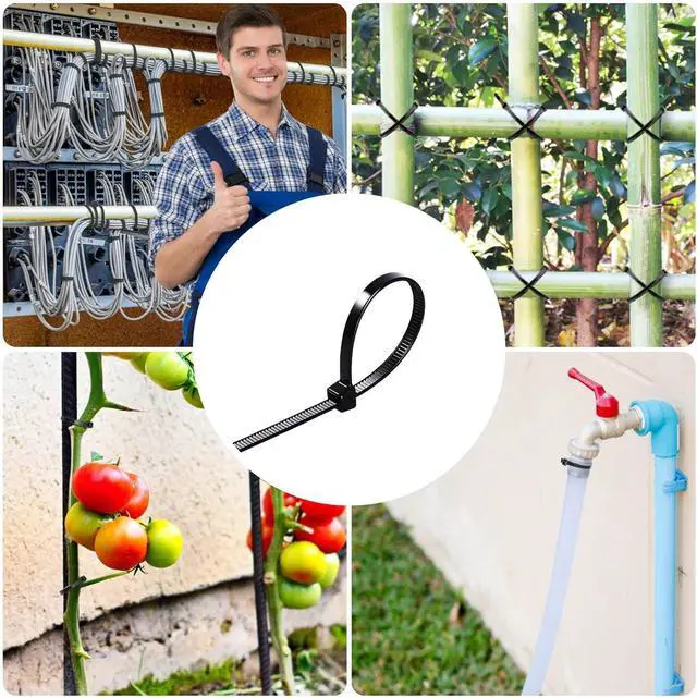 Multi-Purpose Cable zip ties are used for indoor and outdoor: home office garden patio garage shack travel and workshop tidy. Zip ties are used to organize electrical wires hang lights and banners attaching garden fences/nets or plants hang holiday decorations etc. High Quality Zip ties heavy duty are made of high-quality industrial strength 6/6 nylon sturdy and durable up to 50 pounds tensile strength. Heavy duty zip ties can withstand harsh weather conditions perfect for indoor and outdoor use. Self-locking Design Zip ties self-locking fastener design. The locking teeth fix the zip tie at the desired length very sturdy and will not budge over time. Lifting the movable locking tongue can release the buckle solving unexpected clamping situations. Easy to Use The tail of the zip ties is made into a smooth pointed end easy to accurately insert into the lock buckle. After inserting the lock it can be locked with just a gentle pull simple and convenient operation. Men women and the elderly can use it easily. Perfectly Integrated Into the EnvironmentThe zip tie finish is smooth and beautiful. It blends well with various surroundings providing a clean and professional look. Perfect solution for fixing and decorating daily or holiday items and does not appear abrupt when fixing or hanging objects.
