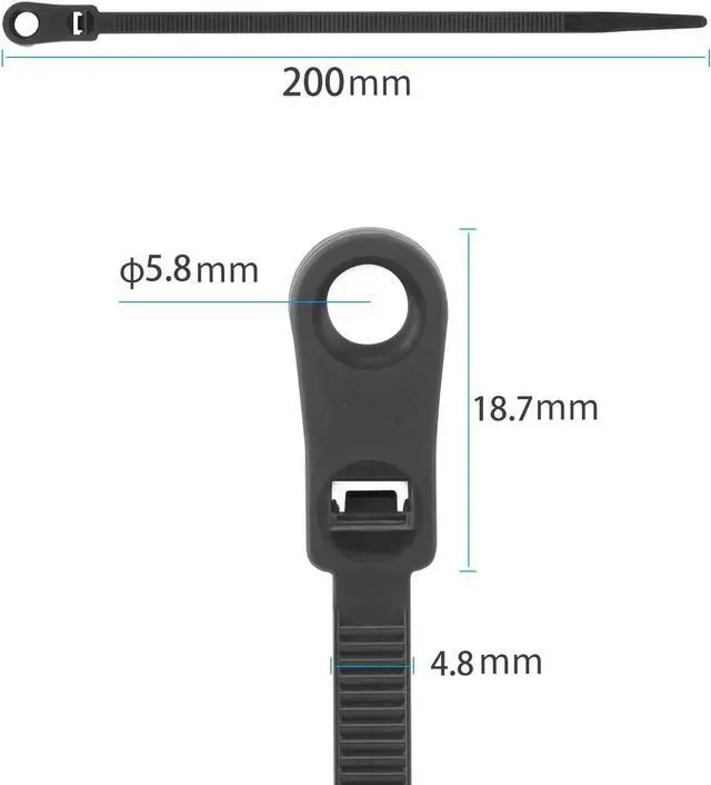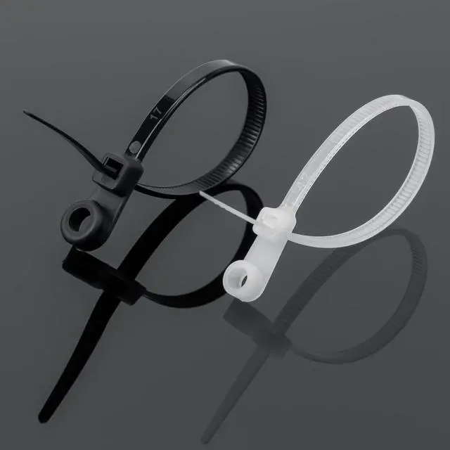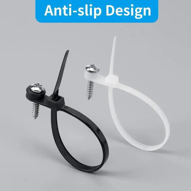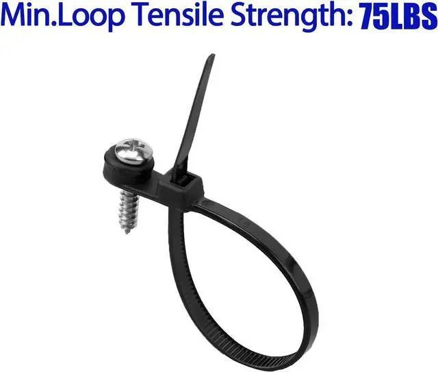 Package Included110 PCS 7.5 -inch long 0.18 inch wide Mounting Head Cable Tie Made with industrial strength Nylon 6/6. More StableXINGO Mounting Head zip ties's mounting eyelet can hang cables power cable etc. The ratchet-lock head has a # 4.8 screw hole. You can use screws nails etc along with the zip tie for extra security and flexibility. Premium MaterialIndustrial-strength nylon 66 fireproof material is used which can be used in the environment of -35 to 85 also can withstand up to 50lb tensile strength. Features strong load ability anti-aging anti-acid anti-corrosion and durability.
