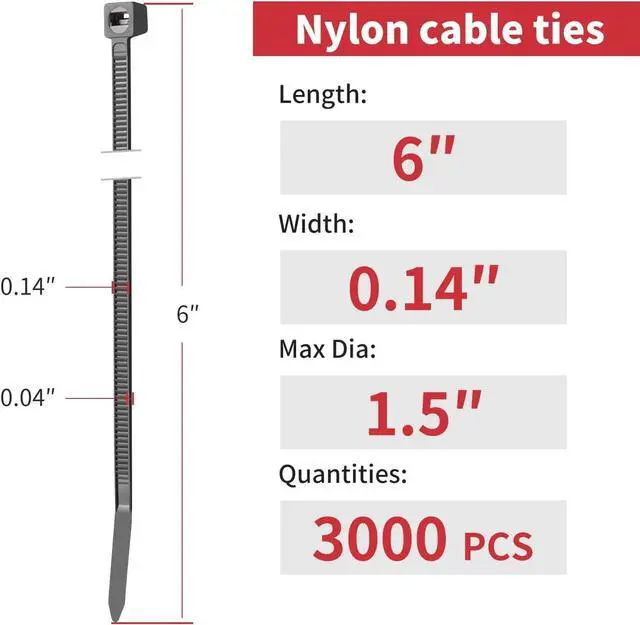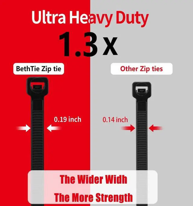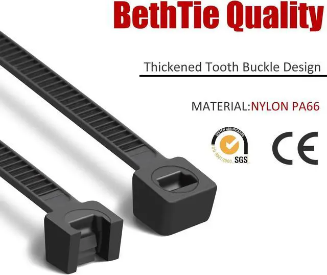 Strength: 40lbs | With BethTie zip ties you don't have to worry about The quality of the zip ties. High-quality materialIndustrial-strength nylon 66 fireproof material is used which can be used in the environment of -35 to 85 Features strong load ability anti-aging anti-acid anti-corrosion and durability. Easy-usingYou only arrange the things to be bundled and then bend one side of the small saw blade inward pass the arrow through the other part of the button and easily pull it. Wide ApplicationBethTie Zip Ties is perfect for tying cables plants packages etc. It is a good helper for family office garden workshop and other places. After SalesIf You have any dissatisfaction with the product We offer a 30-day refund/return policy. What Beth Tie provide is not only good products but also quality services. Try it completely risk-free! Hurry up and click to add to the shopping cart!