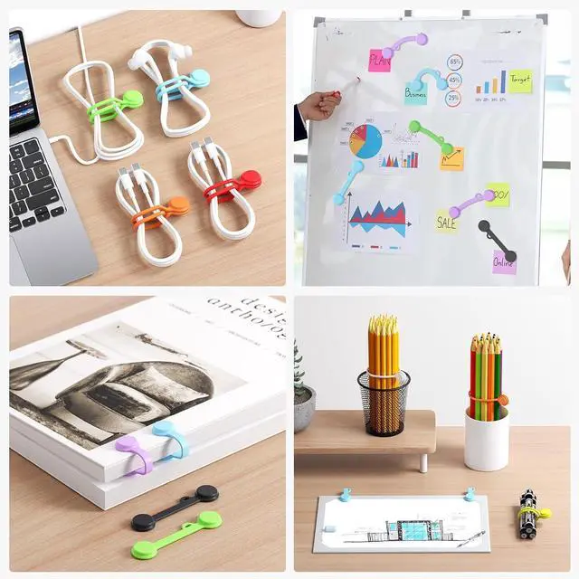 Keeps drawers desks and travel bags clutter-free with a sleek reusable design. Multi-Purpose for Home & Office Use as cable organizers fridge magnets bookmarks hair ties or DIY decorations. Ideal for tech crafts kitchens and workspacessaves space while adding a modern touch. 100+ Reuses & Plastic-Free Solution The flexible silicone and magnetic closure withstand frequent use without breakingideal for replacing disposable zip ties and reducing plastic waste made of Food-grade silicone Weighing 5g each these ties magnetically chain into a compact ring that clips to backpack zippers or tool belts.