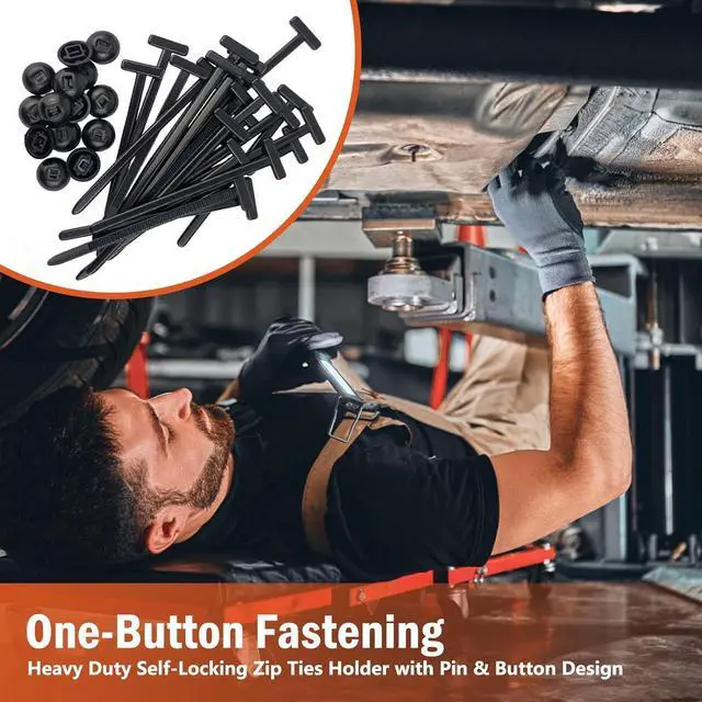 & BUTTON SELF-LOCKING DESIGN: Heavy duty self-locking zip ties holder features a pin and button mechanism for quick one-button installation; no tools required perfect for emergency bumper retainer clips or DIY garage fixesDURABLE