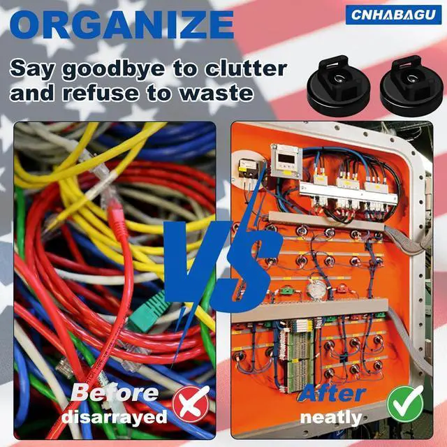 Organisation: Magnetic zip tie mount are ideal for use indoors and outdoors in homes offices warehouses workshops vehicles boats lorries caravans industrial electrics machinery and equipment etc. providing a convenient way of keeping cables together and preventing tangling. they are the ideal solution for managing organised tie cables to maintain a tidy and clutter-free environmentReliable Selection and