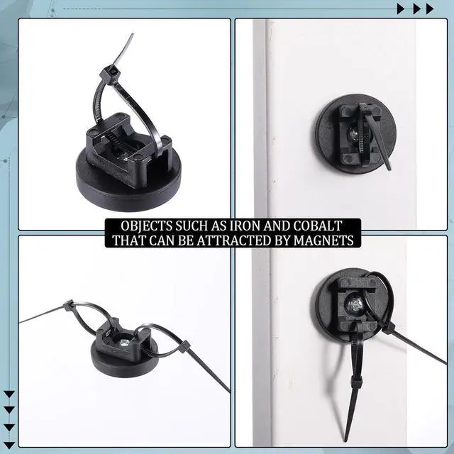 Warning: This product contains magnets. Keep away from children and petsMultiple usages: the magnetic cable holder mounts and heavy duty zip ties can keep your electronic wires USB cables cables of computers and other appliances or decorations organized which are applicable for home office and other occasions; You can apply them to automobile machine lighting lamps shelves and other smooth surfaces