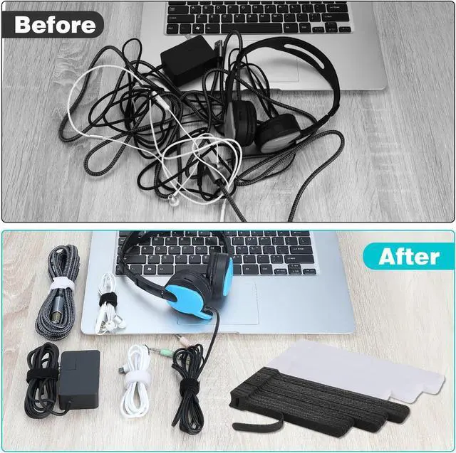 Application: Our wire organizers for cords are ideal fasteners for organizing messy cables and securing loose items. Whether you need to manage cables under your desk bundle electronics cords or organize PC cables audio cables TV cables charger cables headphone cables cell phone charging cables laptop power cables these lightweight cable tie are perfect for any application that requires cable control. They can be used indoors and outdoors for your wire organization and storage needs