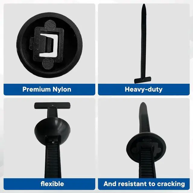 [1] Universal Use Ideal for automotive repair electrical wiring and home organization. Easily replaces screws and clips. automotive repairs and cable management. [2] Fast Installation Snap-fit buckle design locks in 3 seconds without tools. Double-sided teeth for a firm hold. [3] Heavy-Duty Nylon Made from UV-resistant weatherproof nylon for durability in harsh conditions and high temperatures. [4] Compact & Portable Each tie is 3.54 x 0.79 in easy to store in glove box toolbox or emergency kit. [5] 100-Pack Value Includes 100 cable tie buckles for multiple projects. Backed by 1-year worry-free support.