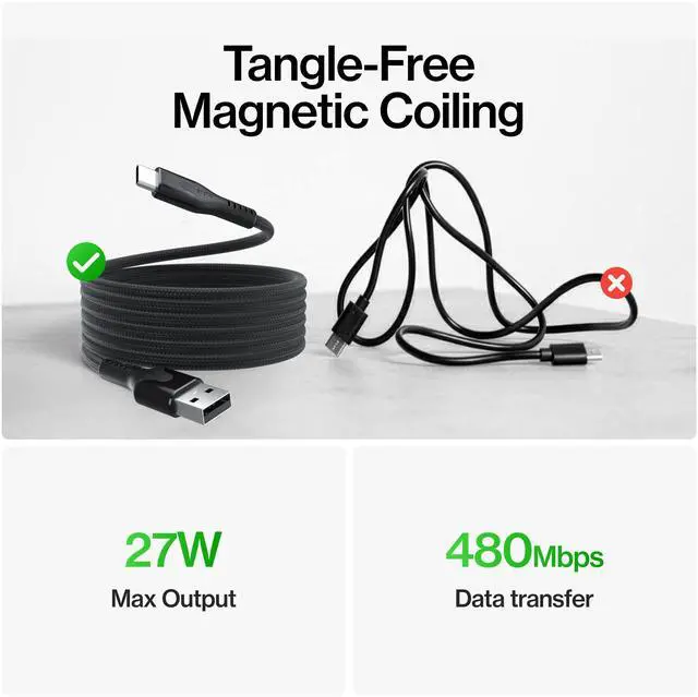 Fast Charging & Data Transfer, Magnetic Material Throughout the Entire Cable, Sticks to Any Metal Surface, Stacks with Other Magnetic Cables, Fold and Organize in Seconds, Untangle Only the Length you Need While Charging, Tangle-Free Storage, Easy to Carry, Durable