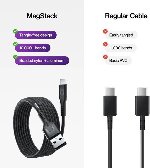 Magnetic Charging Cord with Full Magnetism Wrap: Wrapped with magnetic material, the MagStack magnetic USB cable easily stays organized and tangle-free. Experience the convenience and functionality of our magnetic charger design that ensures durability and usability.