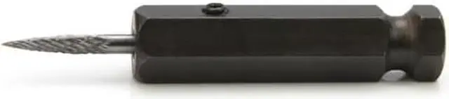 REMOVE DEBRIS - Used to remove debris and clean out the channel of damage caused during a tire puncture CREATE A UNIFORM CHANNEL - Creates a clean, smooth, and uniform 1/8-inch wide channel for a better seal when using tire repair plug stems and stem patches ADAPTER INCLUDED - With included adapter this tool can be used with a standard 3/8-inch quick change chuck on most low speed buffer tools, including the STEELMAN SLP6510 DURABLE CARBIDE STEEL - The burr is made of durable carbide steel to stand up to hard use DOUBLE CUT DESIGN - Double cut design of the burr tip allows it to cut on both insertion and removal strokes during tire repair REPAIR TIRE INJURIES - Can be used to repair tire injuries up to 1/8-inch in diameter