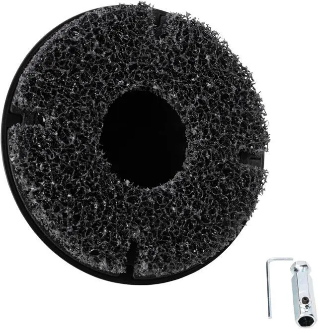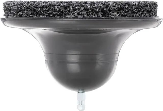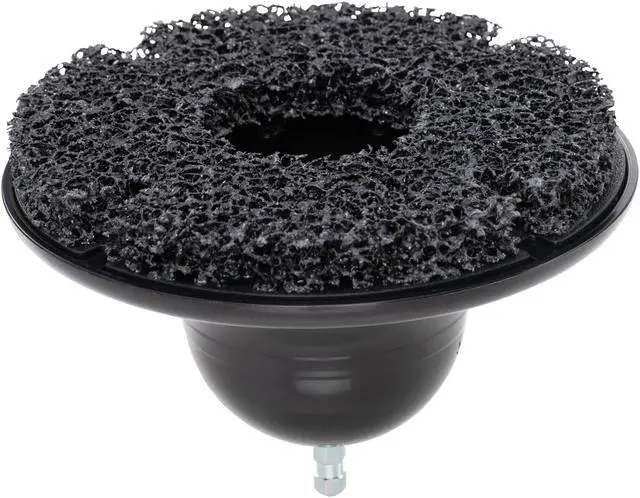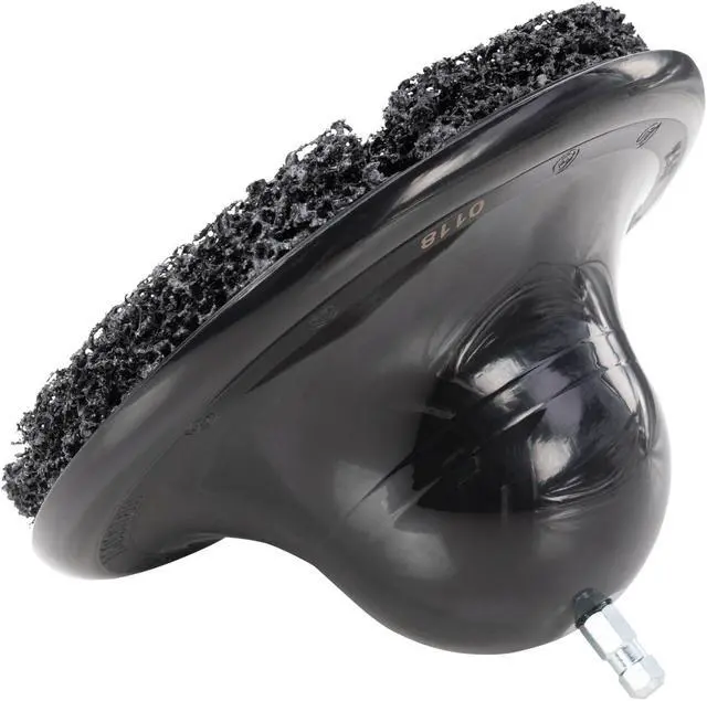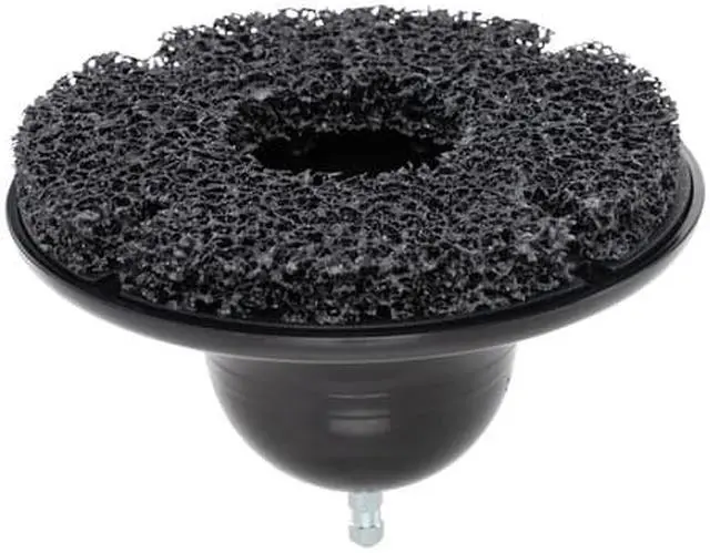 REMOVE BUILD-UP - Quickly remove rust and built-up road grime from studless wheel hub assemblies on cars, trucks, and equipment NYLON PAD - Durable 5/8-inch thick nylon web pad cleans away scale and rust without the scratches and damage of a wire brush POWER TOOL COMPATIBLE - 5/16-inch (8mm) hex molded into body fits into standard size electric or pneumatic drill chucks ARBOR ADAPTER - Includes a 7/16-inch arbor adapter for use with a low speed tire buffer EASY REPLACEMENT - Hook and loop adhesion and molded tabs keep pad in place during use and allow easy replacement