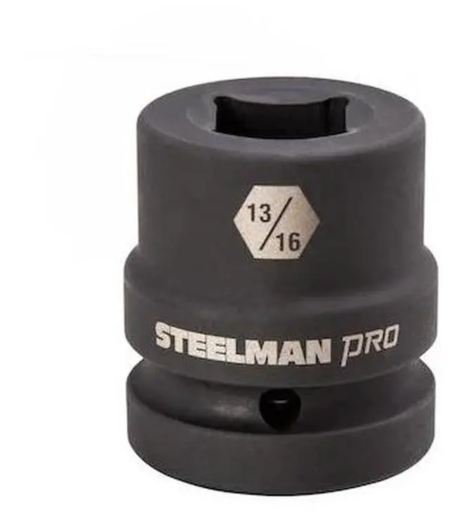 California Proposition 65: This product contains a chemical known to the State of California to cause birth defects or other reproductive harm. Every mechanic knows that having the right tools on hand can make your life easier when working on heavy-duty vehicle wheels. The STEELMAN PRO 79333 1-Inch Drive 13/16-Inch 4-Point Square Budd Impact Socket is designed specifically to help in the removal of the threaded, square end studs used in Budd style heavy-duty truck wheels. Made from drop forged and heat treated chromoly steel, this sockets feature a ball detent recess on the 1-inch drive end to help hold it securely onto ratchets, air wrenches, adapters, and extensions. The socket features a rust and corrosion resistant black phosphate protective coating with laser etched size callouts and markings. Rated to withstand up to 150% of ASME torque requirements for impact tools, this socket can handle tough use in any professional shop / garage, home workshop, or on the work site.