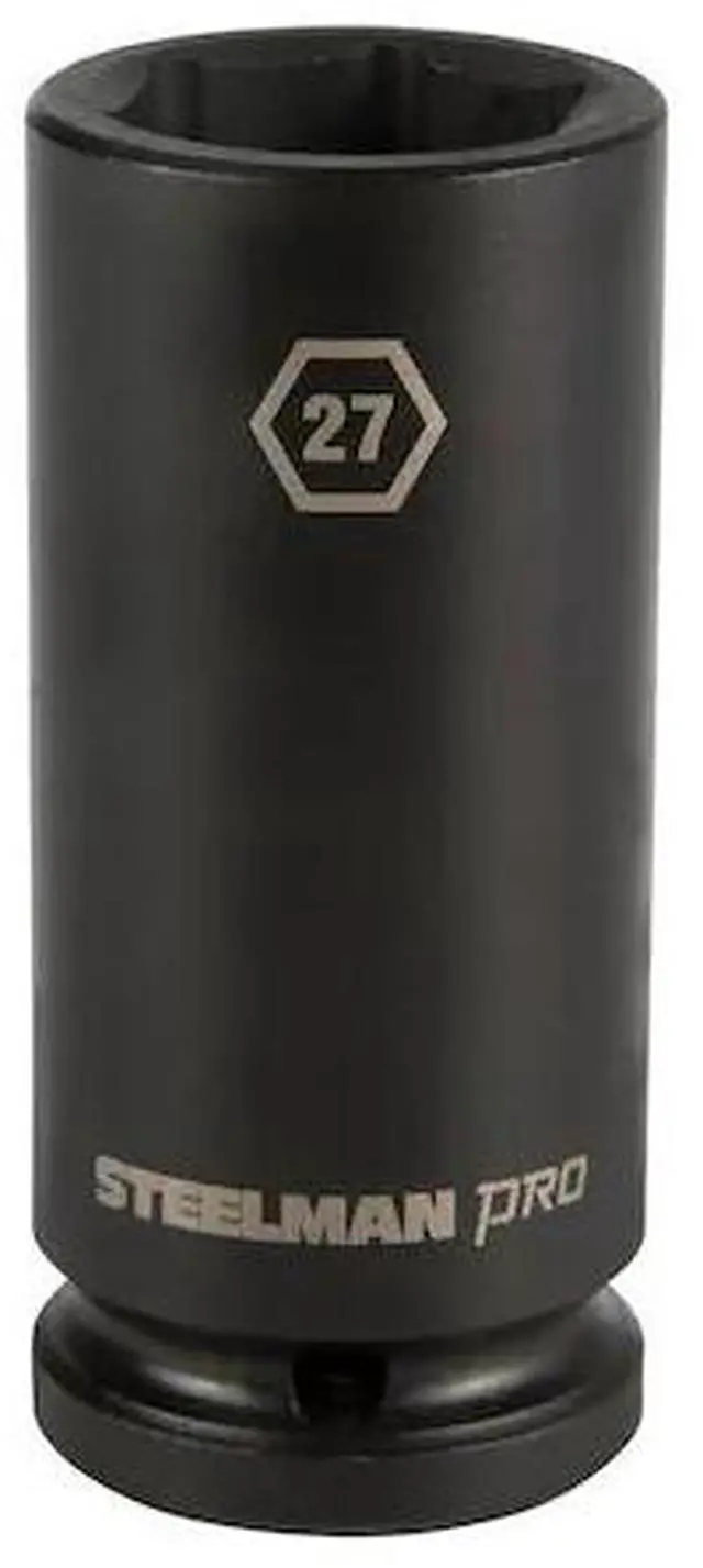 California Proposition 65: This product contains a chemical known to the State of California to cause birth defects or other reproductive harm. Every mechanic knows that having a reliable set of tools can make your life easier when working on heavy-duty vehicles and equipment. The STEELMAN PRO 79259 3/4-Inch Drive 6-Point 27mm Deep Impact Socket is ideal for use in performing maintenance, repairs and service on large trucks and tractor trailers, farming equipment and tractors, oilfield and construction equipment, and mass transit vehicles. Made from drop forged and heat treated chromoly steel, this socket features a ball detent recess on the 3/4-inch drive end to help hold it securely onto ratchets, air wrenches, adapters, and extensions. The 6-point shape grips the sides of fasteners and not the corners, reducing wear and the chance of rounding the fastener and the deep well design allows easy reach of nuts on extended threads and recessed bolts. The socket features a rust and corrosion resistant black phosphate protective coating with laser etched size callouts and markings. Rated to withstand up to 150% of ASME torque requirements for impact tools, this socket can handle tough use in any professional shop / garage, home workshop, or on the work site.