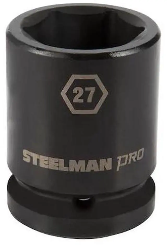 California Proposition 65: This product contains a chemical known to the State of California to cause birth defects or other reproductive harm. Every mechanic knows that having a reliable set of tools can make your life easier when working on heavy-duty vehicles and equipment. The STEELMAN PRO 79250 3/4-Inch Drive 6-Point 27mm Impact Socket is ideal for use in performing maintenance, repairs and service on large trucks and tractor trailers, farming equipment and tractors, oilfield and construction equipment, and mass transit vehicles. Made from drop forged and heat treated chromoly steel, this socket features a ball detent recess on the 3/4-inch drive end to help hold it securely onto ratchets, air wrenches, adapters, and extensions. The 6-point design grips the sides of fasteners and not the corners, reducing wear and the chance of rounding the fastener. The socket features a rust and corrosion resistant black phosphate protective coating with laser etched size callouts and markings. Rated to withstand up to 150% of ASME torque requirements for impact tools, this socket can handle tough use in any professional shop / garage, home workshop, or on the work site.