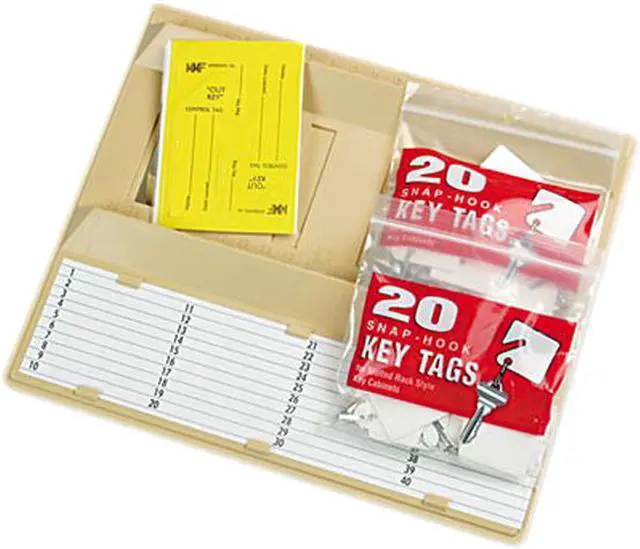 Molded plastic file drawer key rack features adjustable clamps that attach to the back of standard office file drawers, deep desk drawers or partitions. Ideal for out-of-the-way key control. Comes complete with 40 numbered key tags, out-key control tags and key control chart.
