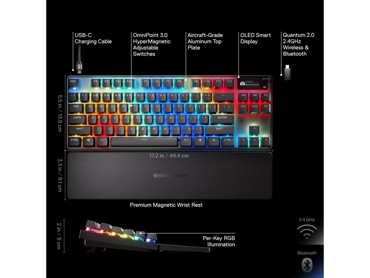 SteelSeries Apex Pro TKL Wireless Gen 3 OmniPoint 3.0 HyperMagnetic Switches, Adjustable Actuation, Rapid Trigger, Game-Ready Presets, Protection Mode, Rapid Tap/SOCD, Dual Wireless, OLED
