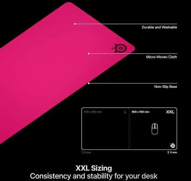 For the past 15 years, esports professionals have trusted the QcK as their go-to mouse pad. SteelSeries products have won more prize money than any other brand, making the QcK mouse pad a trusted choice in the gaming world. The QcK Series is celebrated for its legendary micro-woven cloth, making it the world's best-selling surface. The QcK Cloth Gaming Mouse Pad, XXL, is the gold standard for gamers everywhere, offering unparalleled performance and precision. Elevate your gaming experience with the QcK mouse pad.